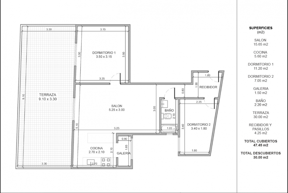 Se compone de recibidor, SALÓN COMEDOR con salida directa a TERRAZA a nivel de 30 m².