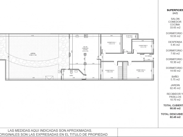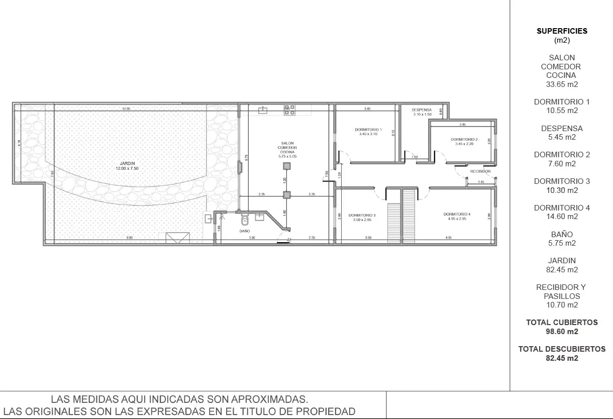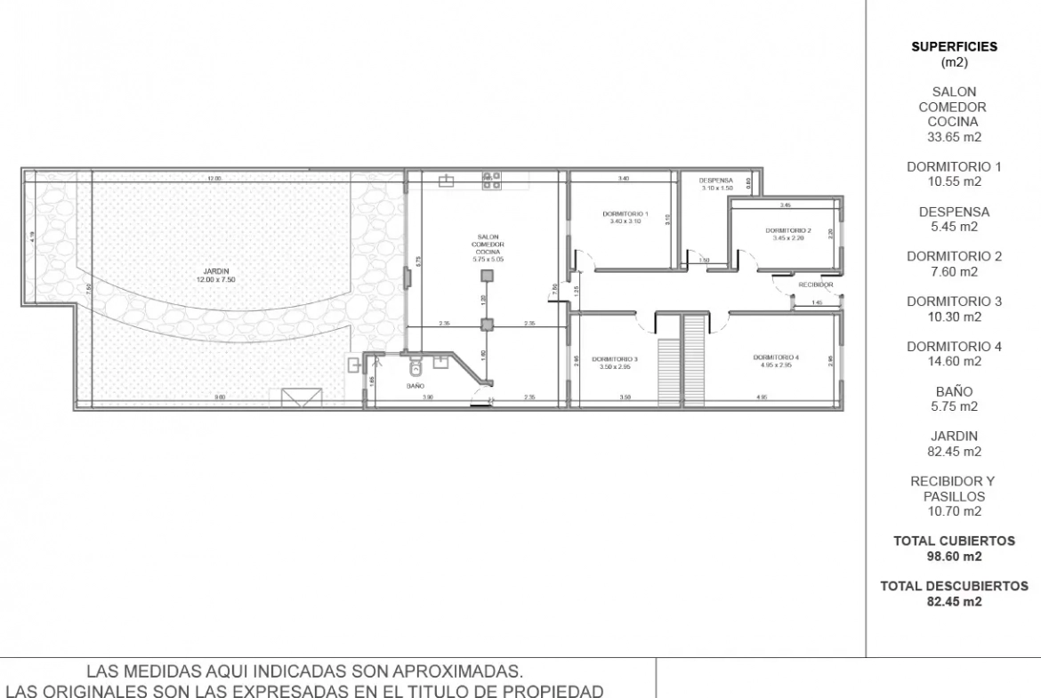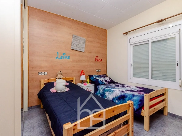 Se compone de recibidor, 4 dormitorios, 3 DOBLES 1 INDIVIDUAL, 1 despensa, 1 cuarto de baño completo. Salón comedor amplio con cocina americana integrada, con salida DIRECTA A PATIO de 60 m² aproximadamente.